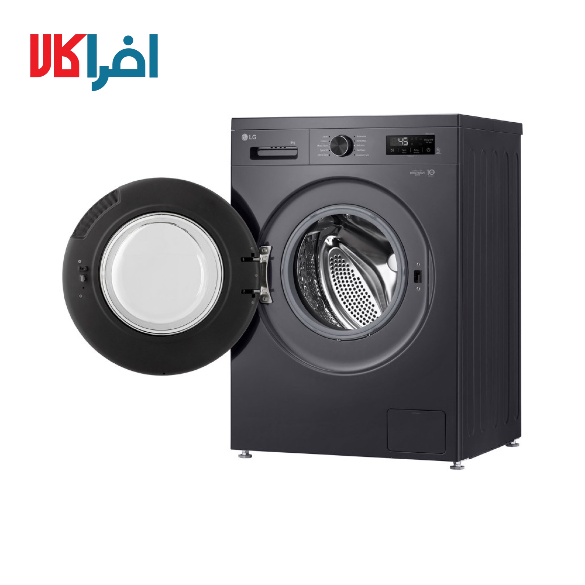 در بالای درب دیگ شستوشو، پنل کنترلی، دکمه پیچی و کشوی مواد شوینده محصول وجود دارد. پنل سگمنتی محصول دارای دکمههای لمسی و به زبان عربی بوده و شما میتوانید دمای آب، سرعت چرخش دیگ و برخی موارد دیگر را از این قسمت تنظیم نمایید. همچنین روی پنل کنترلی دستگاه میتوانید زمان شستوشوی لباسها، علائم اخطاری و برخی موارد دیگر را مشاهده نمایید. همانطور که گفته شد برنامههای شستوشو روی پنل دستگاه به زبان عربی و انگلیسی میباشند و شما می توانید برنامه دلخواه خود را از طریق دکمه پیچی روی دستگاه انتخاب کنید.